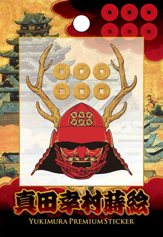 戦国を生きた武将、真田幸村が蒔絵シールになって登場! 兜と家紋「六文銭」をデザインしました。