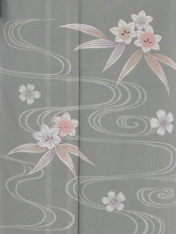 夏 サマー 訪問着 t571 利休鼠色 水面に花 絽 レンタル お宮参り 貸衣装 お茶会 新品足袋プレゼント 着物 式典 七五三 お茶会 往復送料無料 女性和服 ほうもんぎ ホウモンギ houmongi RCP 夏物【レンタル】