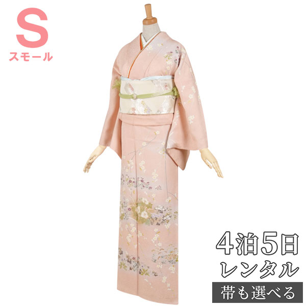 着物レンタル レンタル着物 訪問着 レンタル レンタル訪問着 着物 フルセット「H014 薄ピンク しだれ白梅と草花 小さいサイズ」 正絹 ホテル・式場への配送OK!